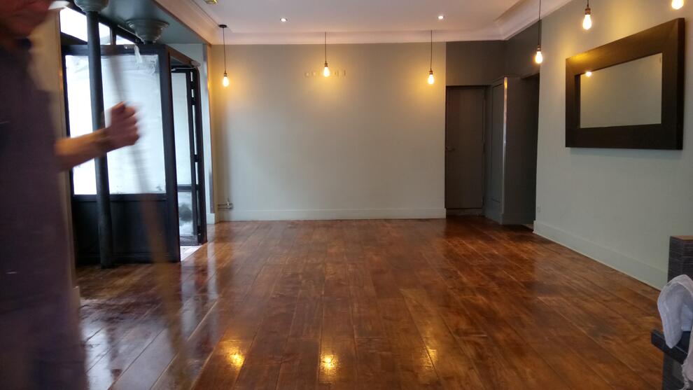 Peinture complete 25m salon , cuisine , entree , salle de douche et dalles a clipser en PVC au sol a Paris 75011 , Budget 3800 euros