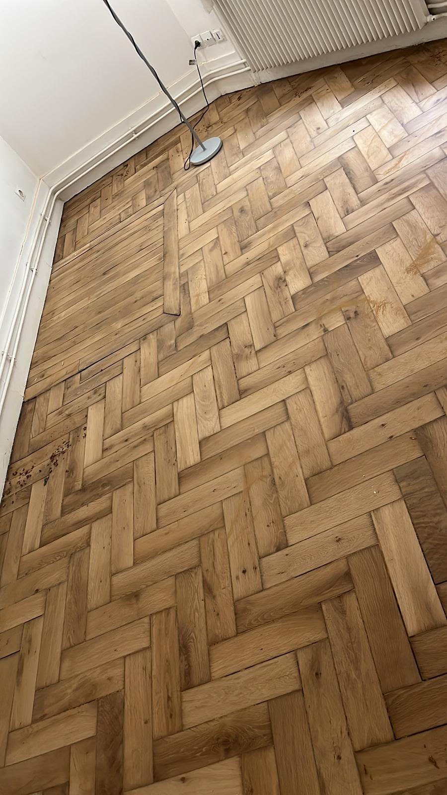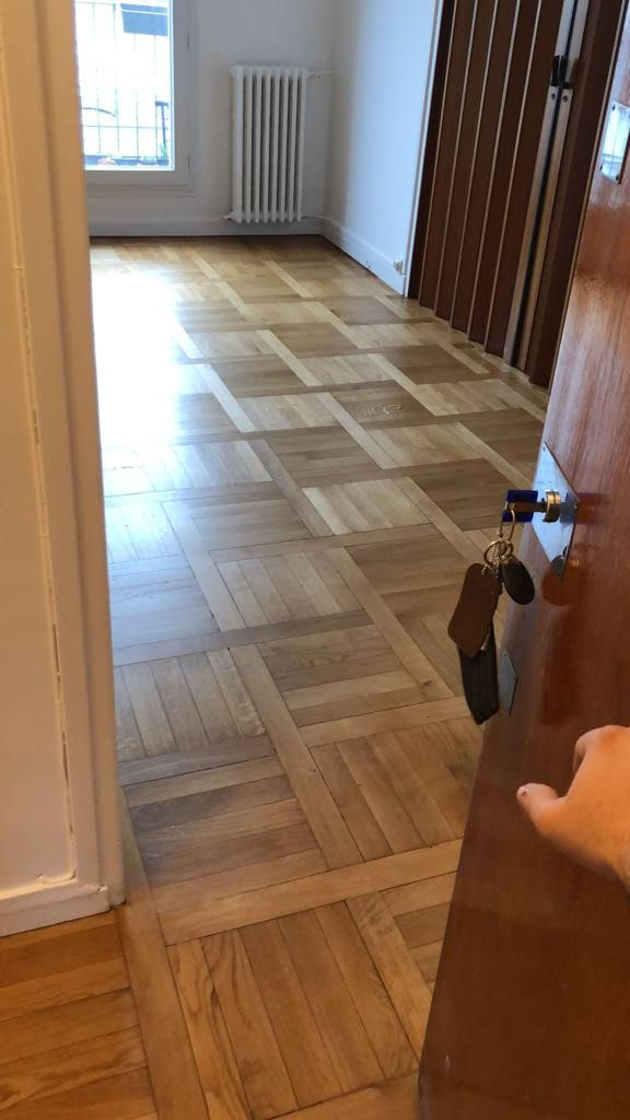 Poncage parquet 30m , vernis , egrenage, deuxieme couche de vernis et peinture des plinthes a Paris 75015, budget 1800 euros